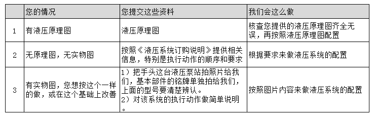 液壓系統(tǒng)訂購(gòu)說(shuō)明表: